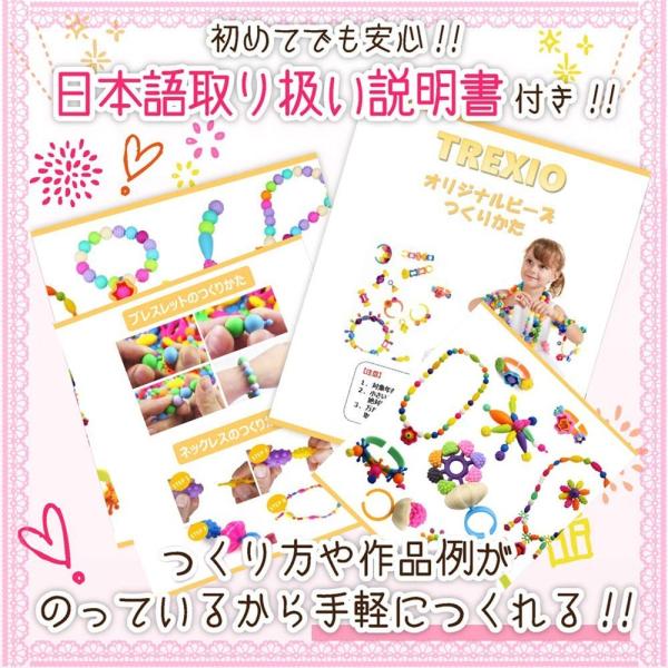 Amazon Trexio おもちゃ ビーズ アクセサリーキット 500個セット Diy材料 手作り 知育玩具 メイキングトイ 女の子 子供のお誕生日プレゼント 日本語取り扱い説明書 専用収納ケース付き ギフト 記念日 クリスマス ハンドメイド ネックレス ブレスレット 指輪 指先
